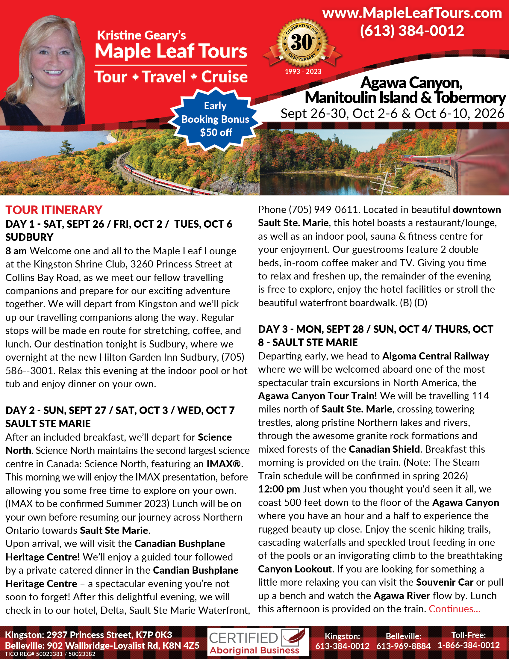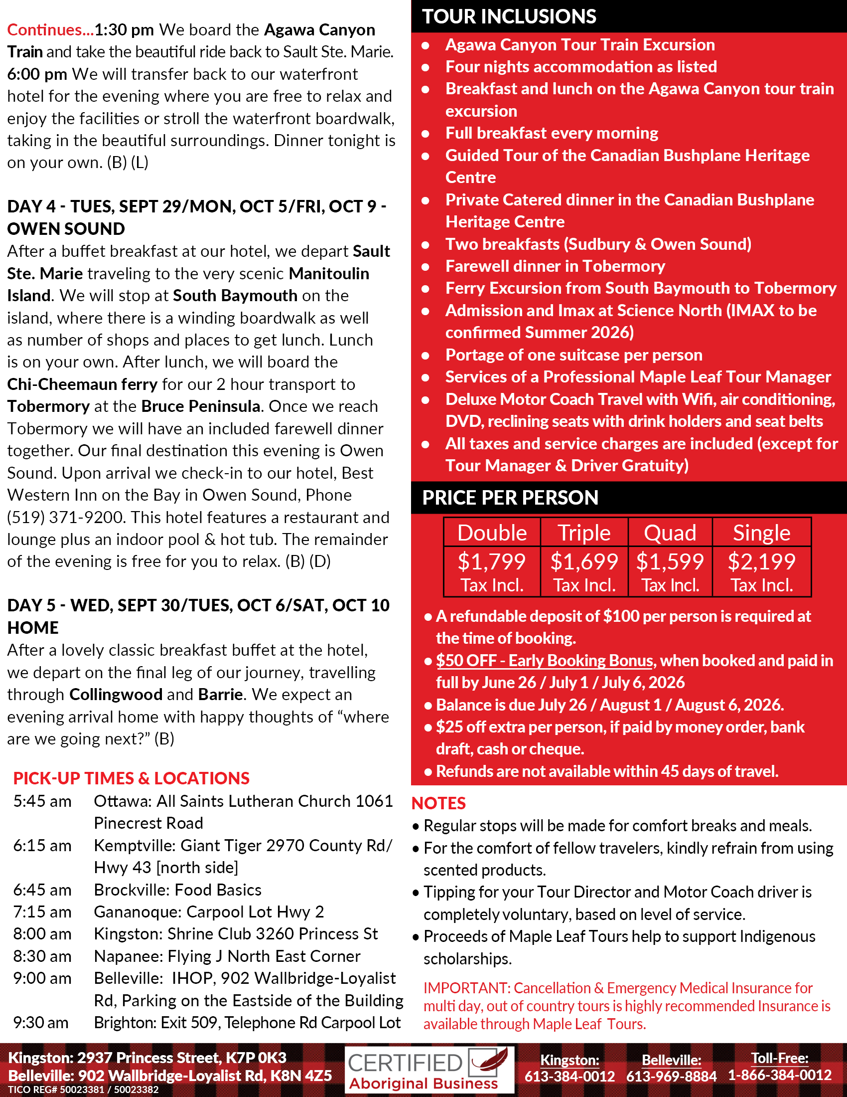 • A portion of the proceeds from this Maple Leaf Tour helps to support Indigenous Scholarships
