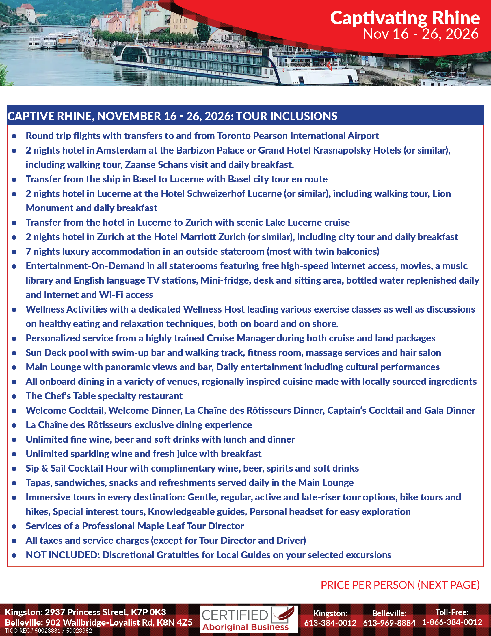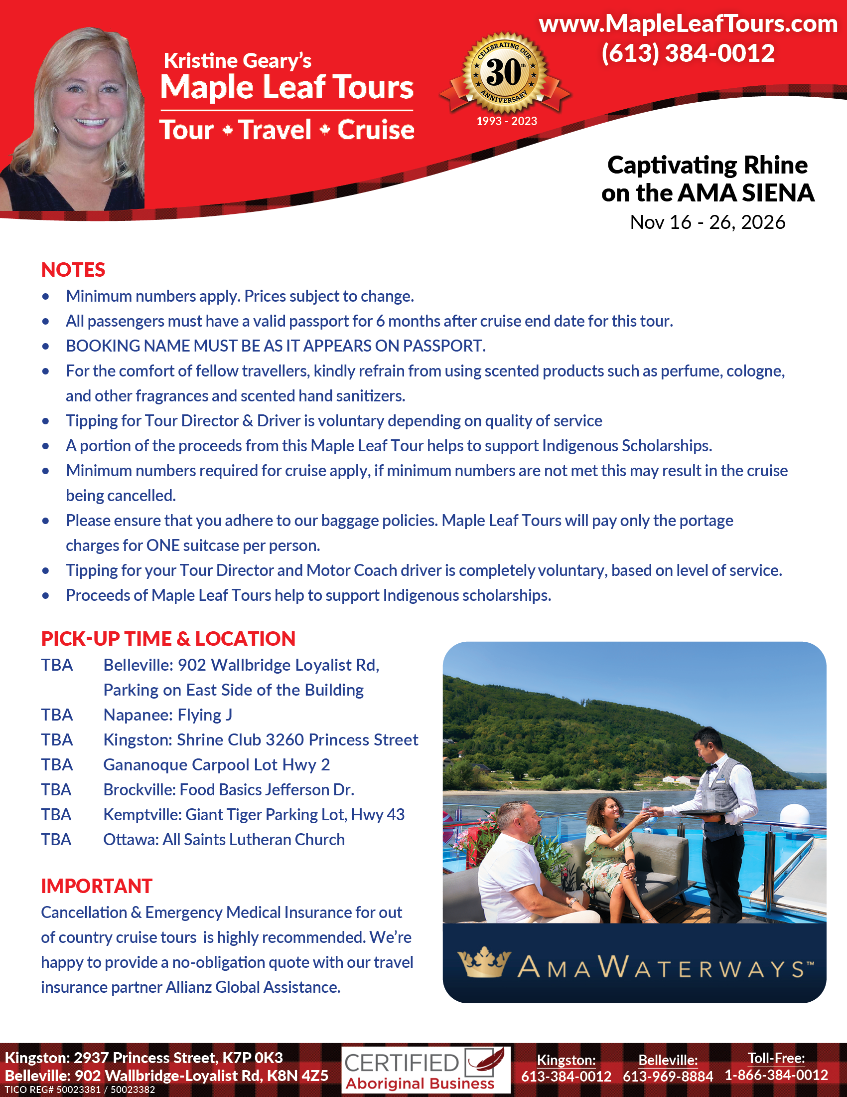 - A portion of the proceeds from this Maple Leaf Tour helps to support Indigenous Scholarships.