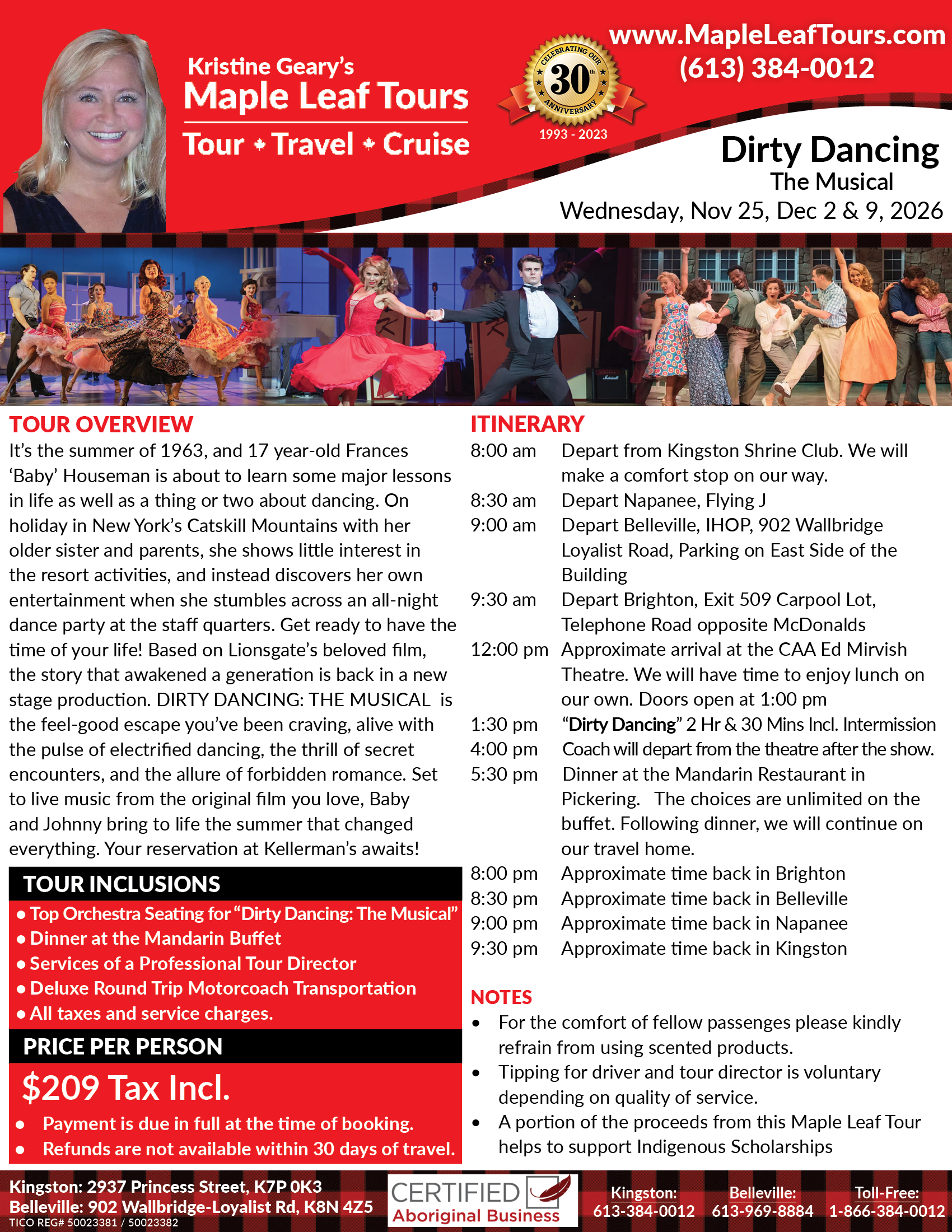 • A portion of the proceeds from this Maple Leaf Tour Helps to Support Indigenous Scholarships