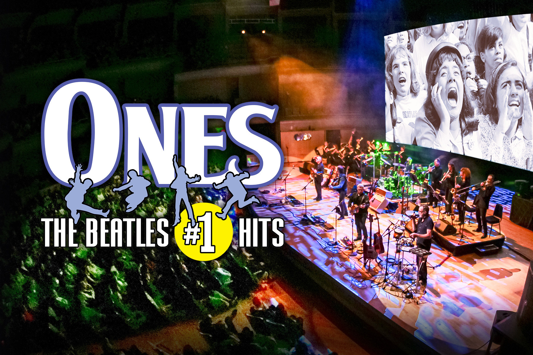 questions comes the show ONES – The Beatles #1 Hits. This show is a commitment to note perfect performances of the number one Beatles songs from the Ed Sullivan Show in 1964 to their break up in 1970. A cast of top musicians have paid attention to every detail, including 28 guitars and period correct amplifiers and drums that were used on the original Beatles recordings. This incredible music is framed by