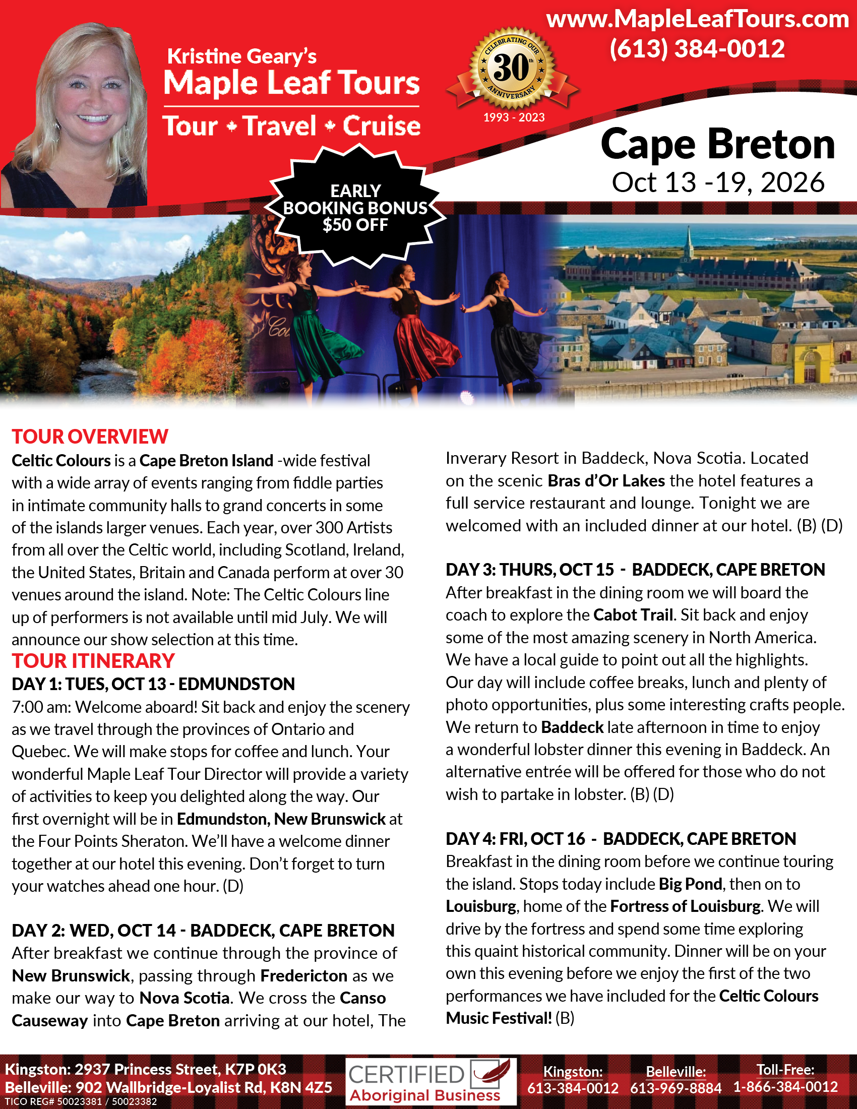 - A portion of the proceeds from this Maple Leaf Tour Helps to Support Indigenous Scholarships