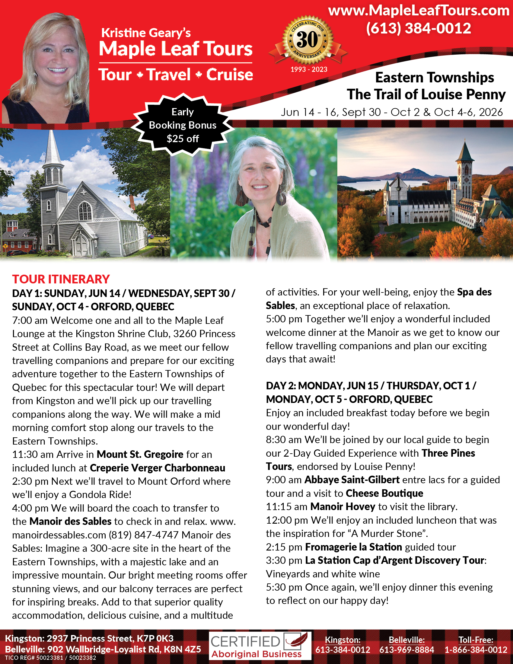 • 2-Day Guided Experience with Three Pines Tours, endorsed by Louise Penny