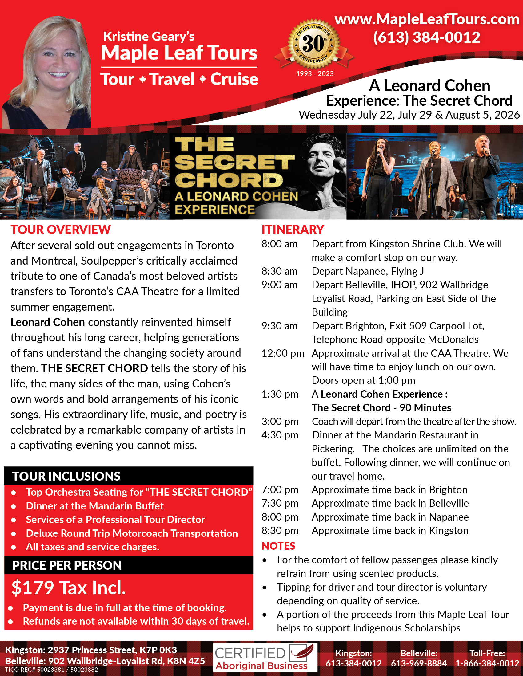 - A portion of the proceeds from this Maple Leaf Tour helps to support Indigenous Scholarships