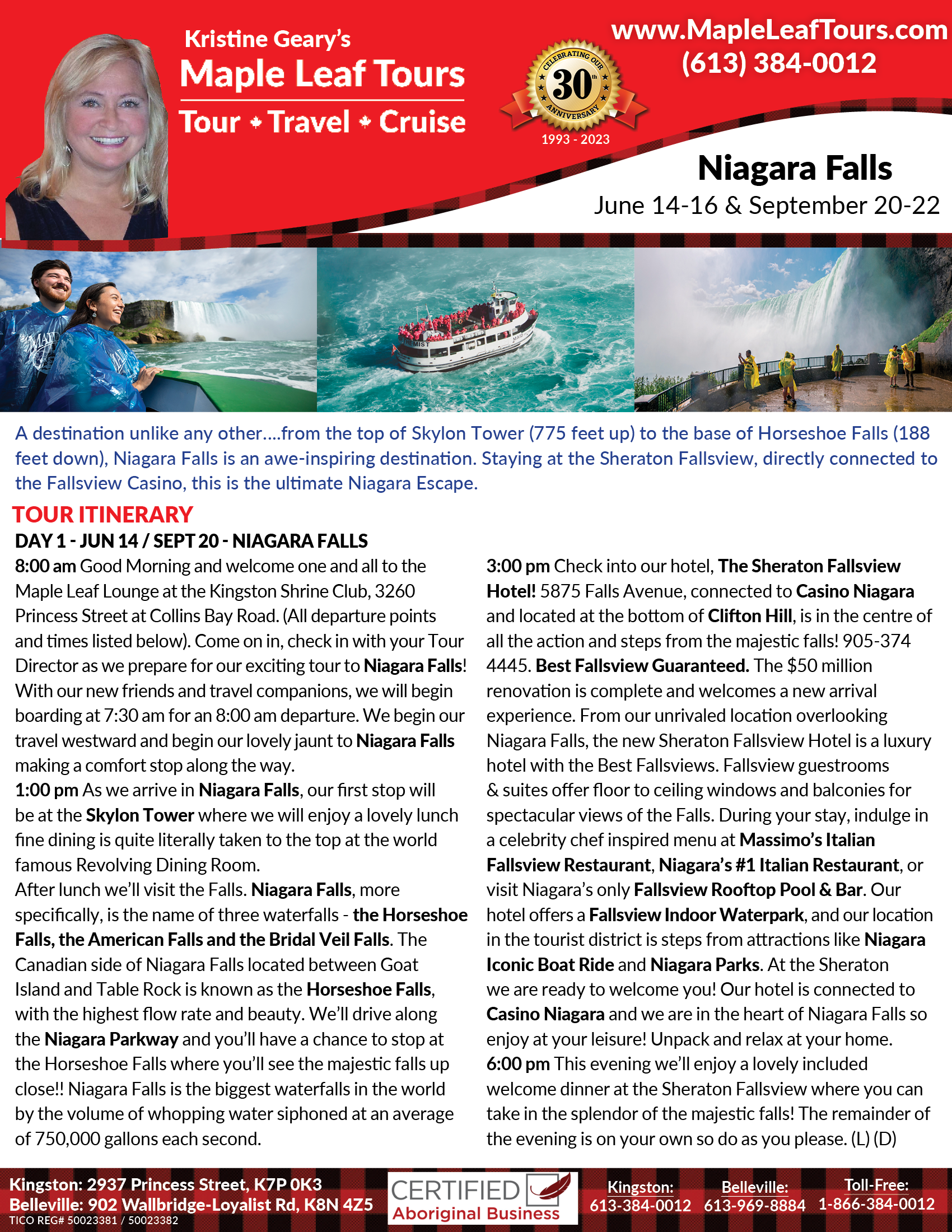 • Fully escorted by a professional Maple Leaf Tour Director