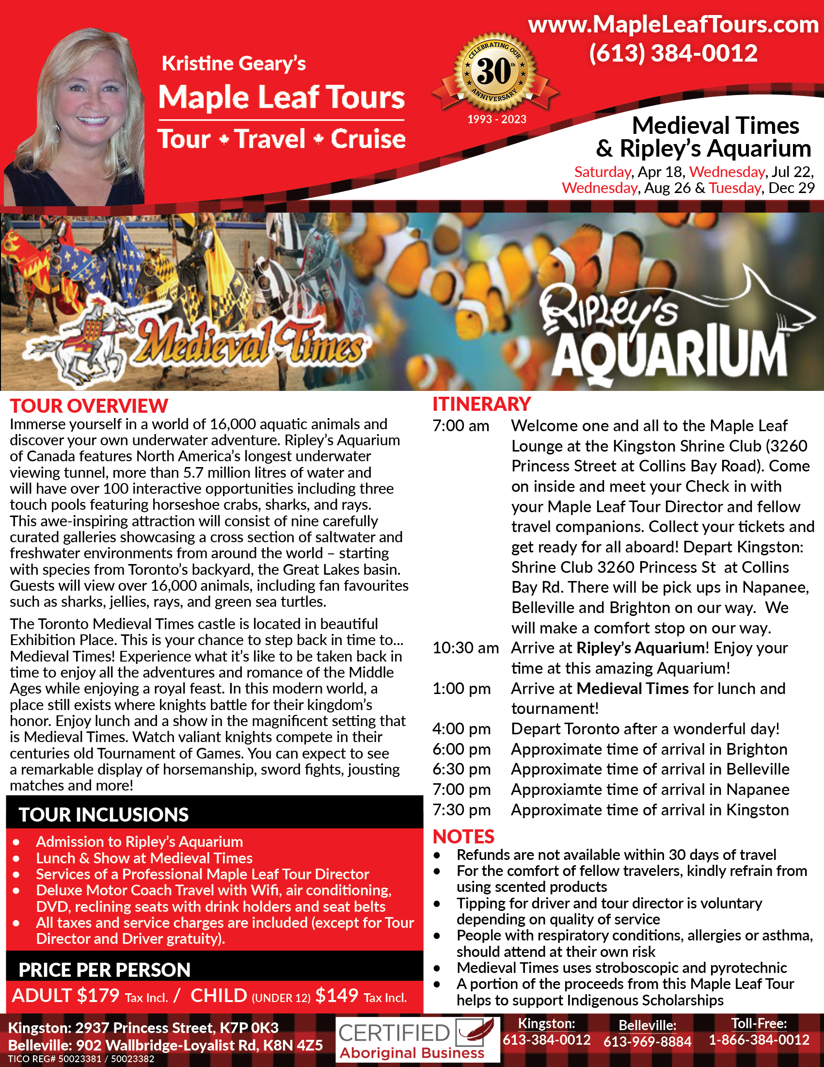 • A portion of the proceeds from this Maple Leaf Tour Helps to Support Indigenous Scholarships