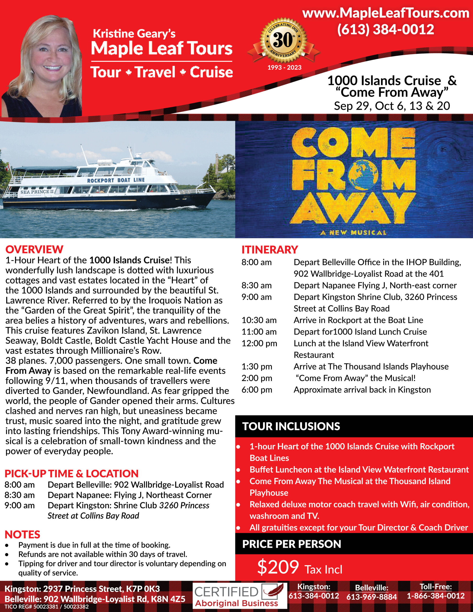 Itinerary MLT Thousand Islands Cruise & Come From Away