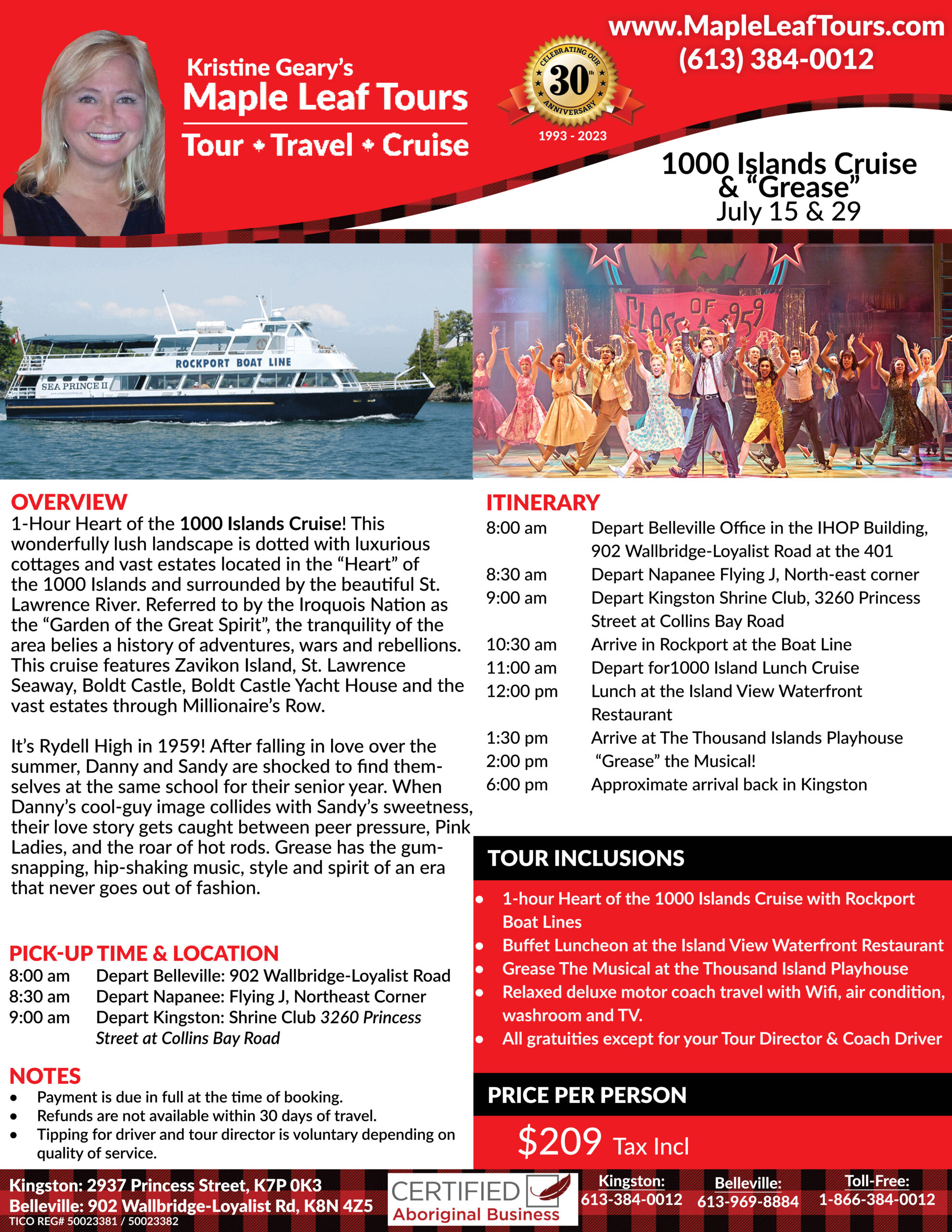 • 1:30 pm Arrive at The Thousand Islands Playhouse