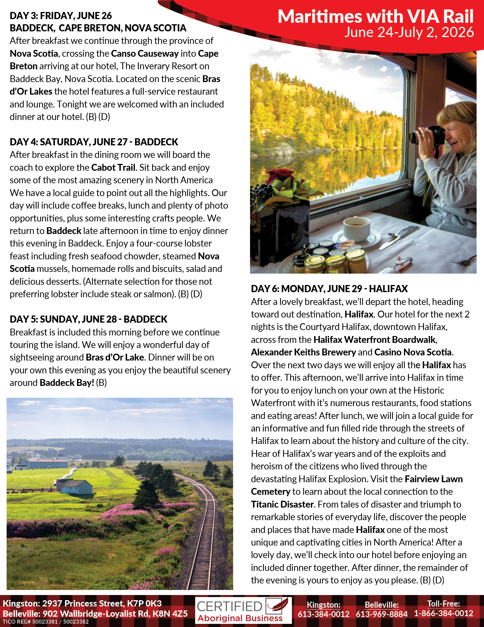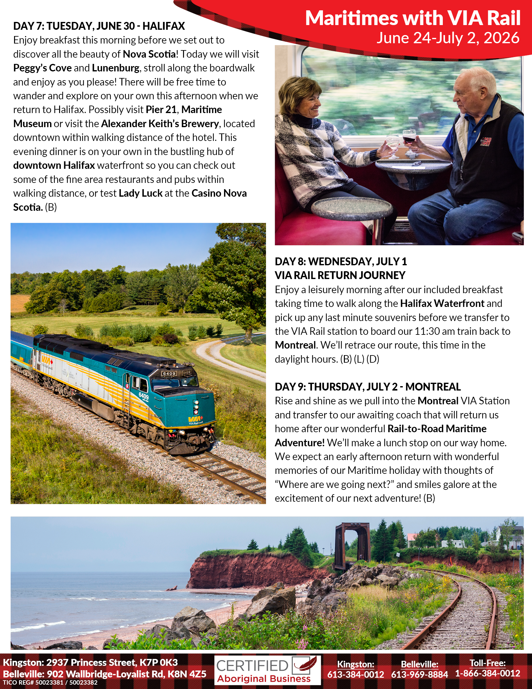 10:00 am A warm welcome to our fellow travelling friends, old and new, as we get ready for a wonderful Rail-to-Road Adventure to the Maritimes! Once you arrive this