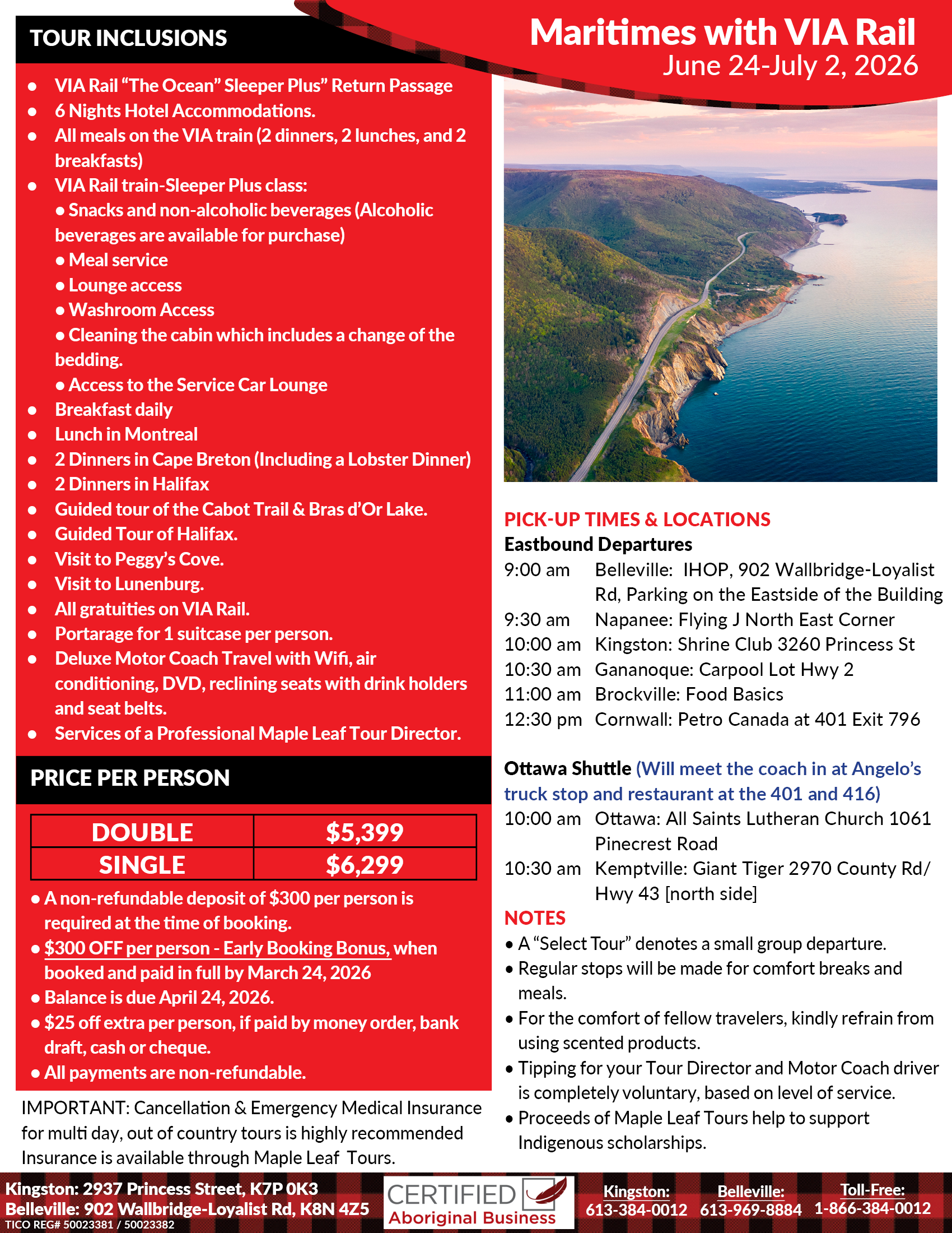 - Services of a Professional Maple Leaf Tour Director.