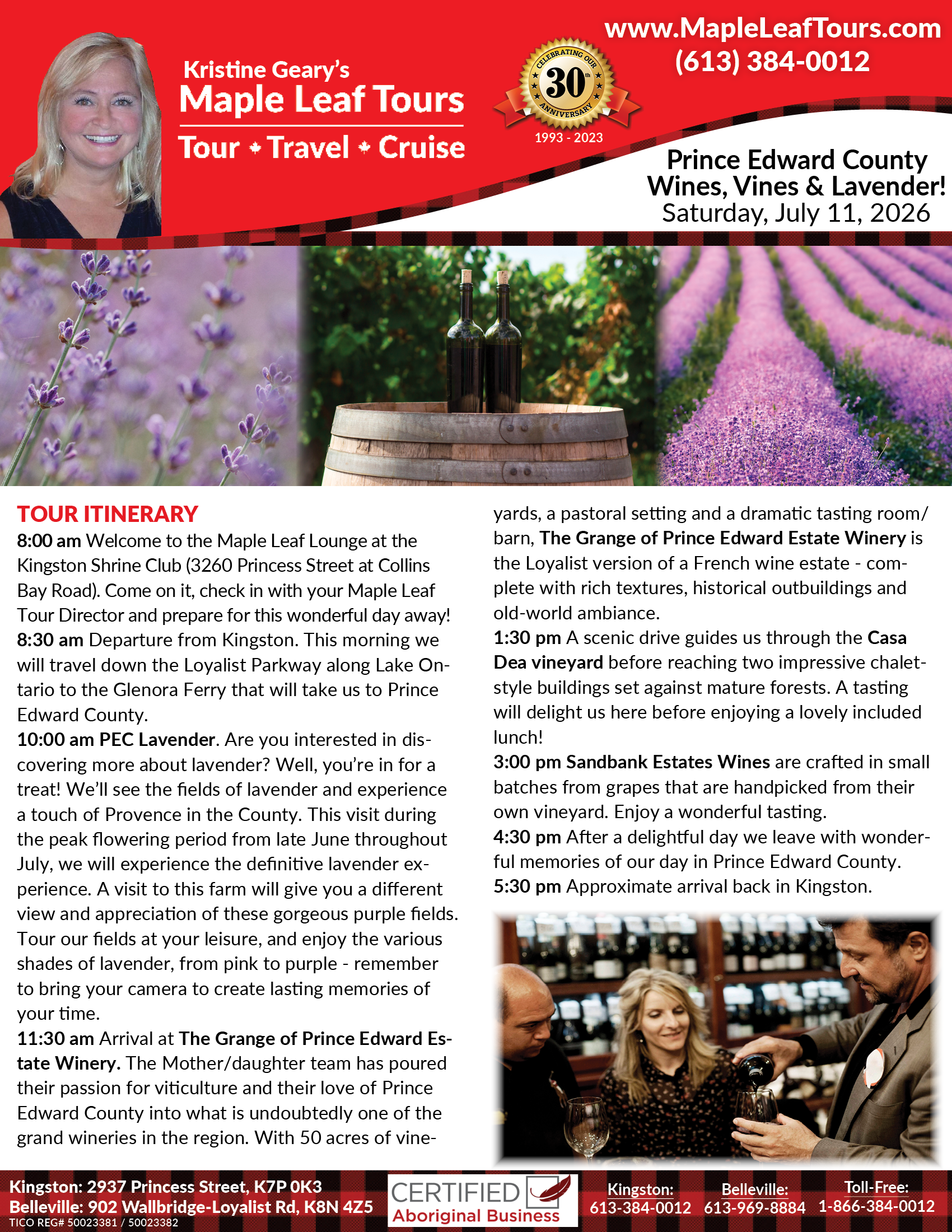 Maple Leaf Tours is proud to offer this wonderful day tour to Prince Edward County!